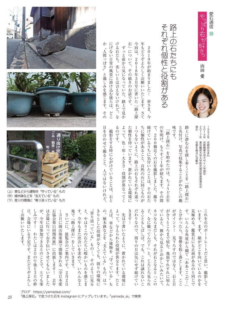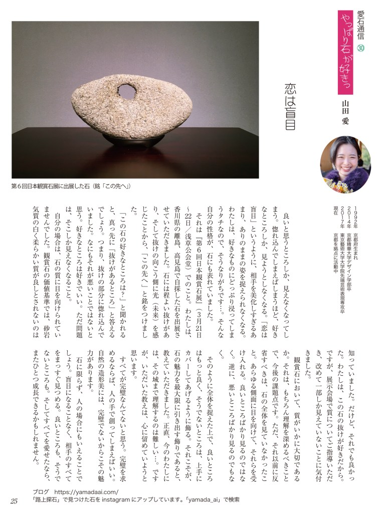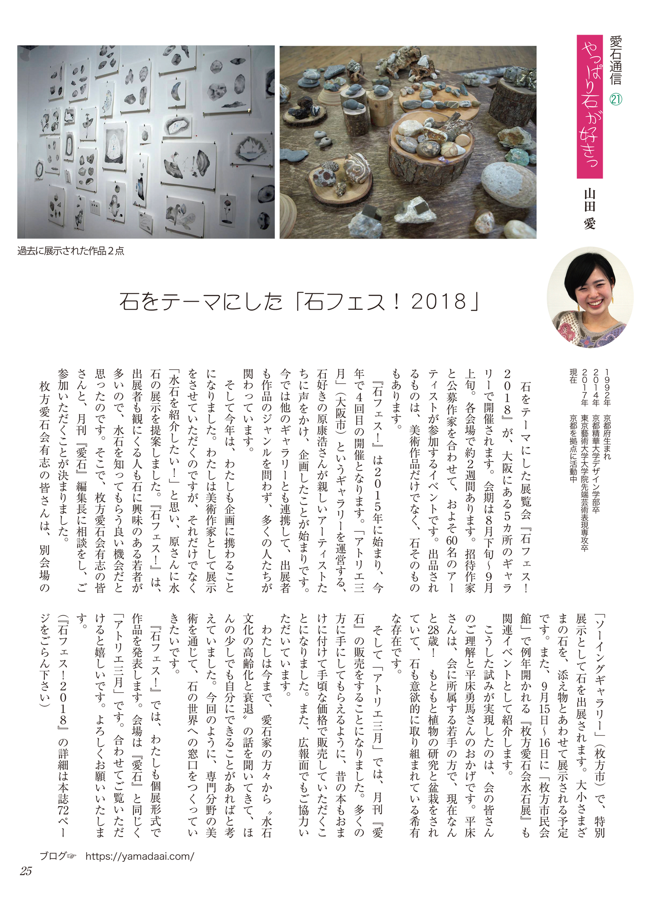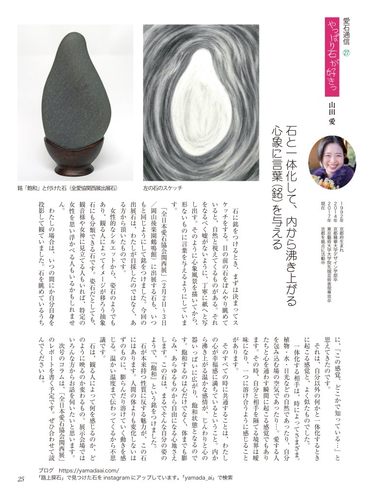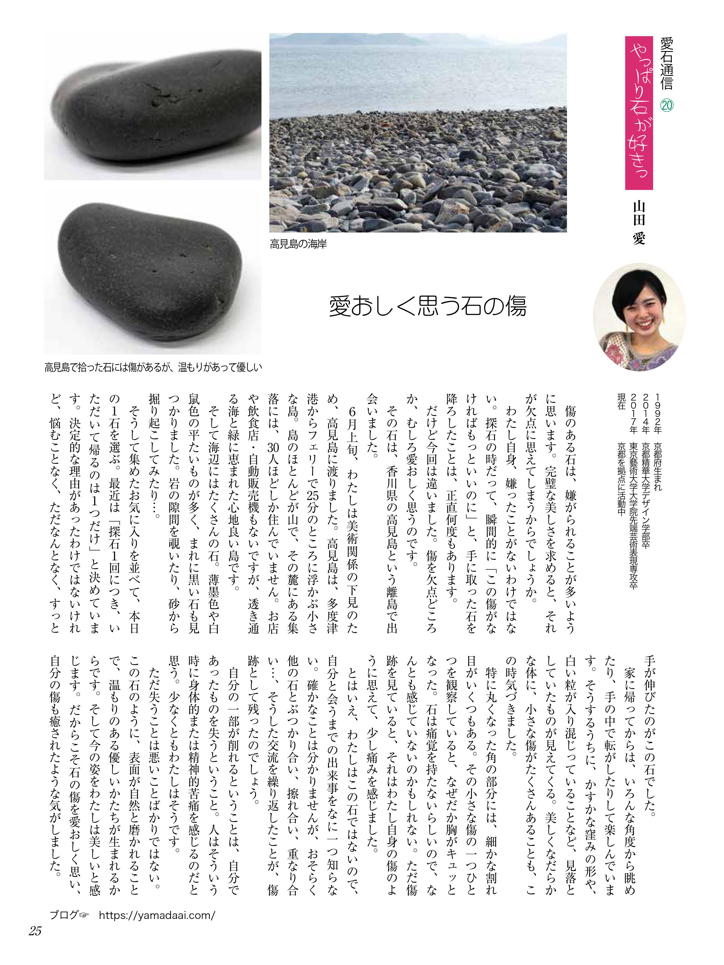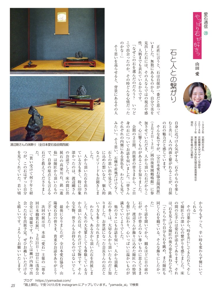 水石趣味専門の月刊誌『愛石』でコラムを連載しています。 2019年 2019年1月号2019年2月号2019年3月号2019年4月号2019年5月号2019年6月号 2018年 2018年1月号2018年2月号2018年3月号2018年4月号2018年5月号2018年6月号2018年7月号2018年8月号2018年9月号2018年10月号2018年11月号2018年12月号 2017年 2017年 1月号2017年 2月号2017年 3月号2017年 4月号2017年 5月号2017年 6月号2017年 7月号2017年 8月号2017年 9月号2017年 10月号2017年 11月号2017年 12月号 2017年1月号〜2019年6月号掲載分 月刊『愛石』詳細はこちらをご覧ください。 共有: X で共有 (新しいウィンドウで開きます) X Facebook で共有 (新しいウィンドウで開きます) Facebook いいね 読み込み中…
