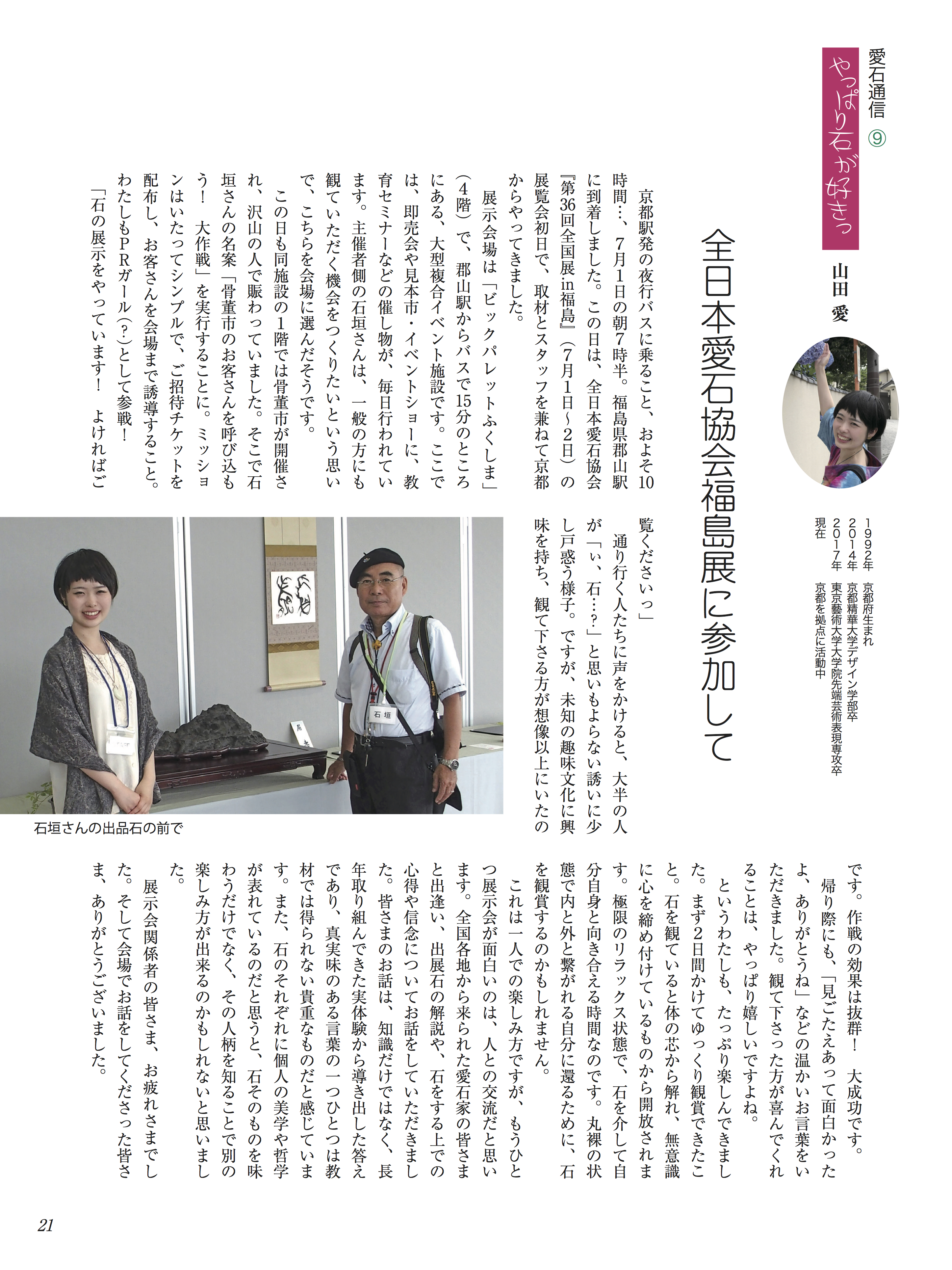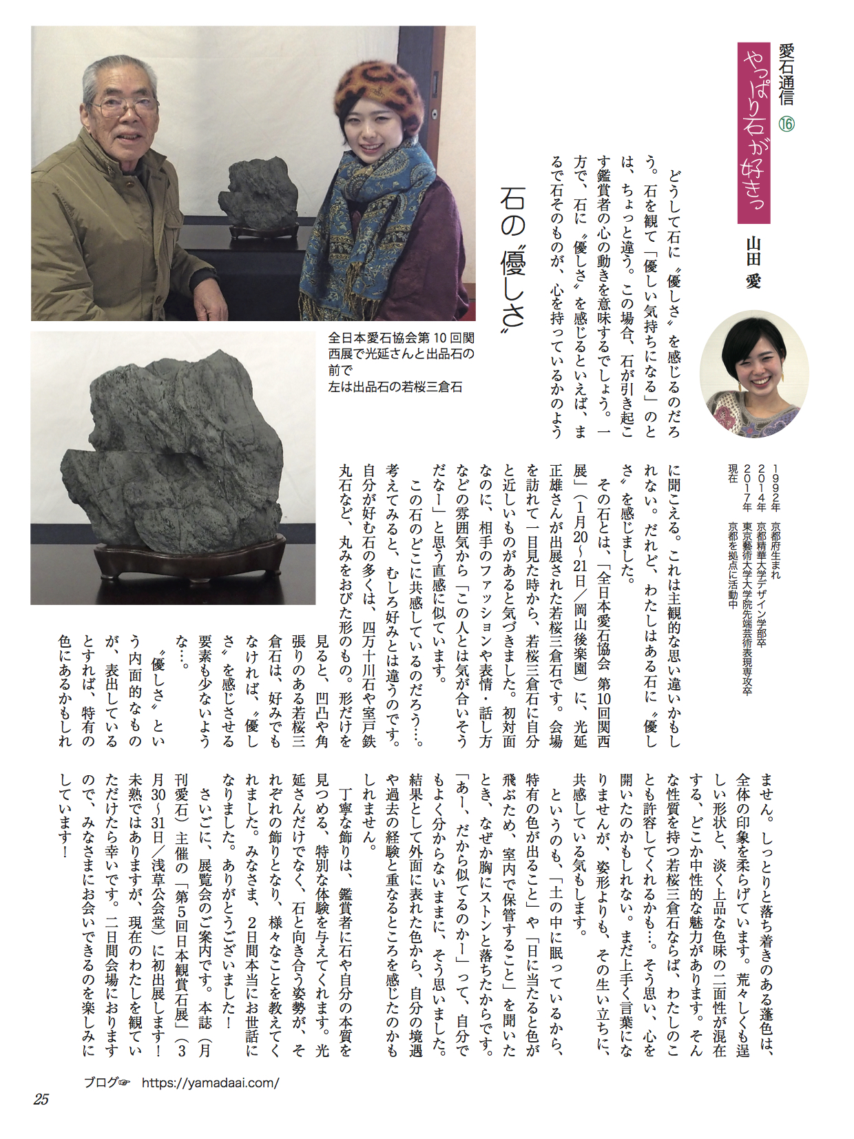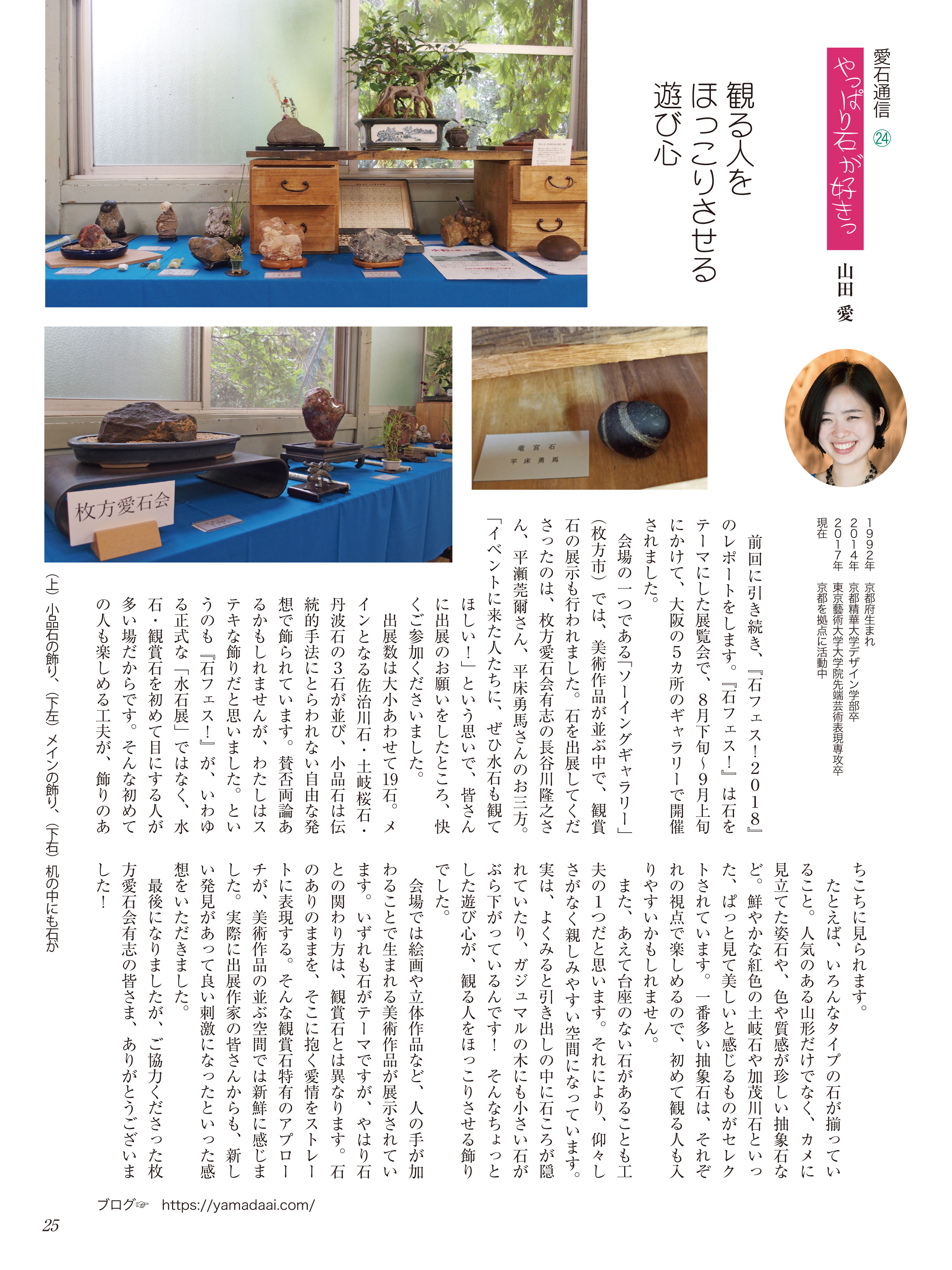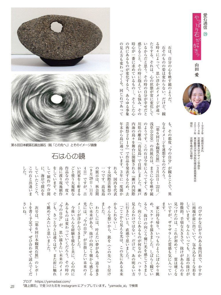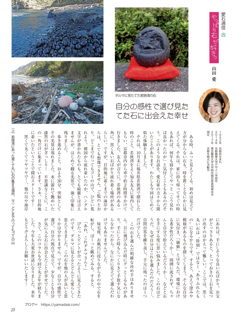 水石趣味専門の月刊誌『愛石』でコラムを連載しています。 2019年 2019年1月号2019年2月号2019年3月号2019年4月号2019年5月号2019年6月号 2018年 2018年1月号2018年2月号2018年3月号2018年4月号2018年5月号2018年6月号2018年7月号2018年8月号2018年9月号2018年10月号2018年11月号2018年12月号 2017年 2017年 1月号2017年 2月号2017年 3月号2017年 4月号2017年 5月号2017年 6月号2017年 7月号2017年 8月号2017年 9月号2017年 10月号2017年 11月号2017年 12月号 2017年1月号〜2019年6月号掲載分 月刊『愛石』詳細はこちらをご覧ください。 共有: X で共有 (新しいウィンドウで開きます) X Facebook で共有 (新しいウィンドウで開きます) Facebook いいね 読み込み中…
