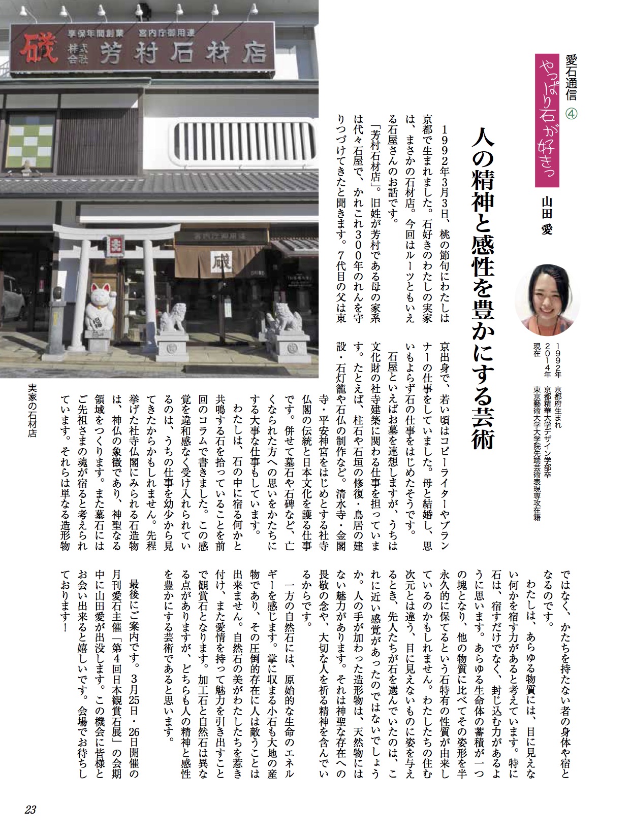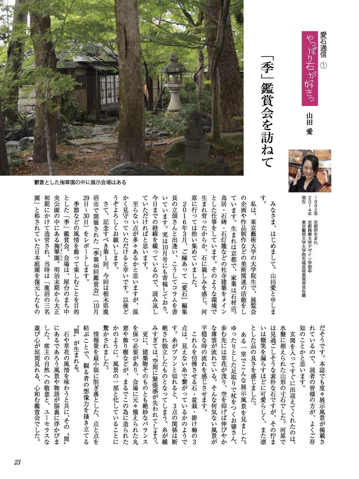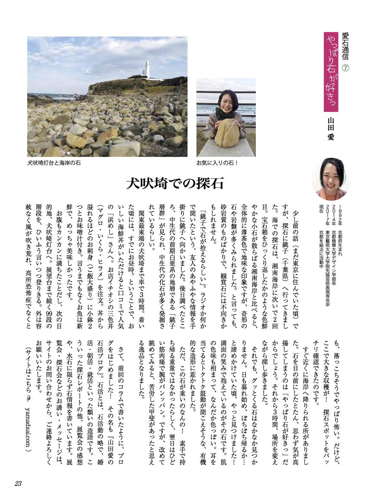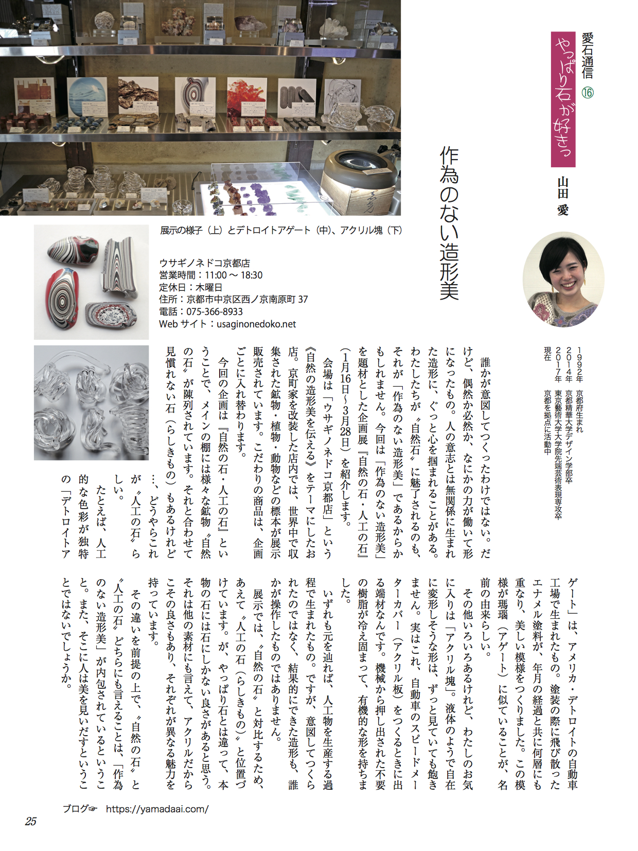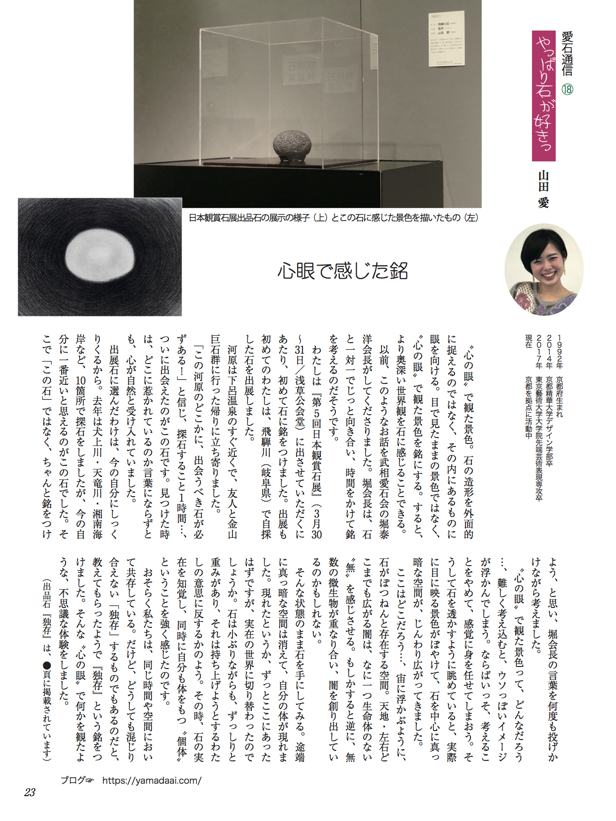 水石趣味専門の月刊誌『愛石』でコラムを連載しています。 2019年 2019年1月号2019年2月号2019年3月号2019年4月号2019年5月号2019年6月号 2018年 2018年1月号2018年2月号2018年3月号2018年4月号2018年5月号2018年6月号2018年7月号2018年8月号2018年9月号2018年10月号2018年11月号2018年12月号 2017年 2017年 1月号2017年 2月号2017年 3月号2017年 4月号2017年 5月号2017年 6月号2017年 7月号2017年 8月号2017年 9月号2017年 10月号2017年 11月号2017年 12月号 2017年1月号〜2019年6月号掲載分 月刊『愛石』詳細はこちらをご覧ください。 共有: X で共有 (新しいウィンドウで開きます) X Facebook で共有 (新しいウィンドウで開きます) Facebook いいね 読み込み中…
