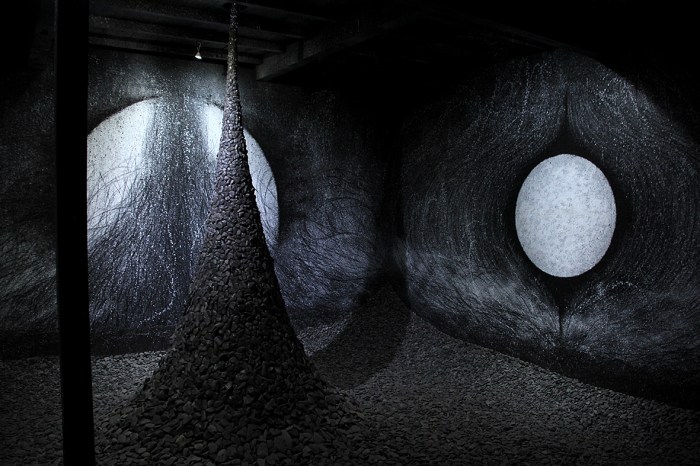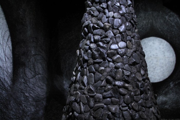 paper , japanese ink , charcoal , stone & gravel of Takami island
