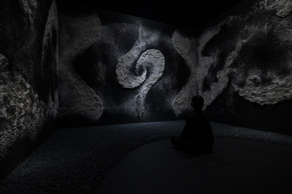 展示会場に暗室をつくり、5m×5m×5mの空間全体で表現している。幅5m×高さ3.6mの壁画が3面描かれている。鑑賞者は座って作品をみることができる。