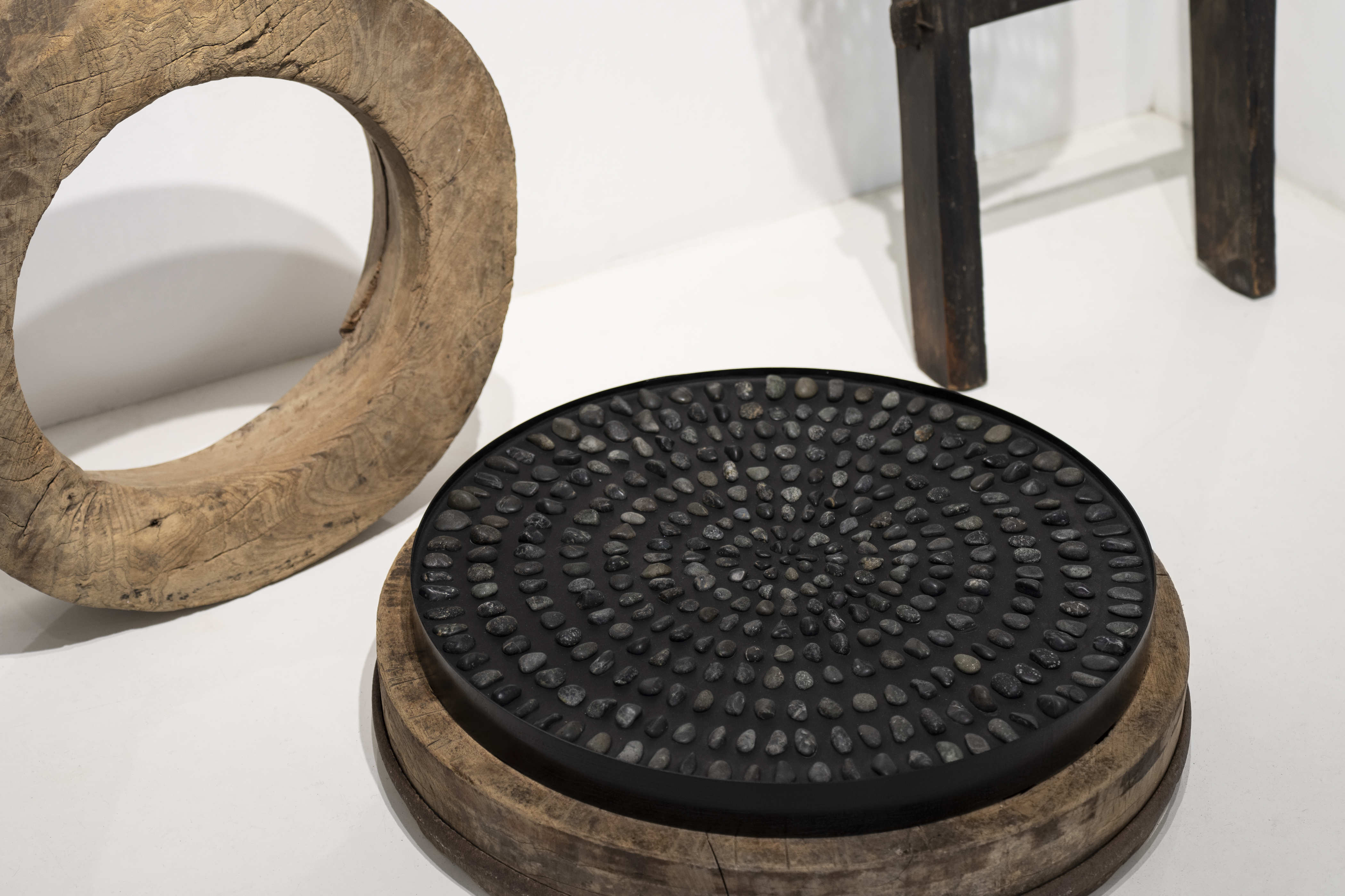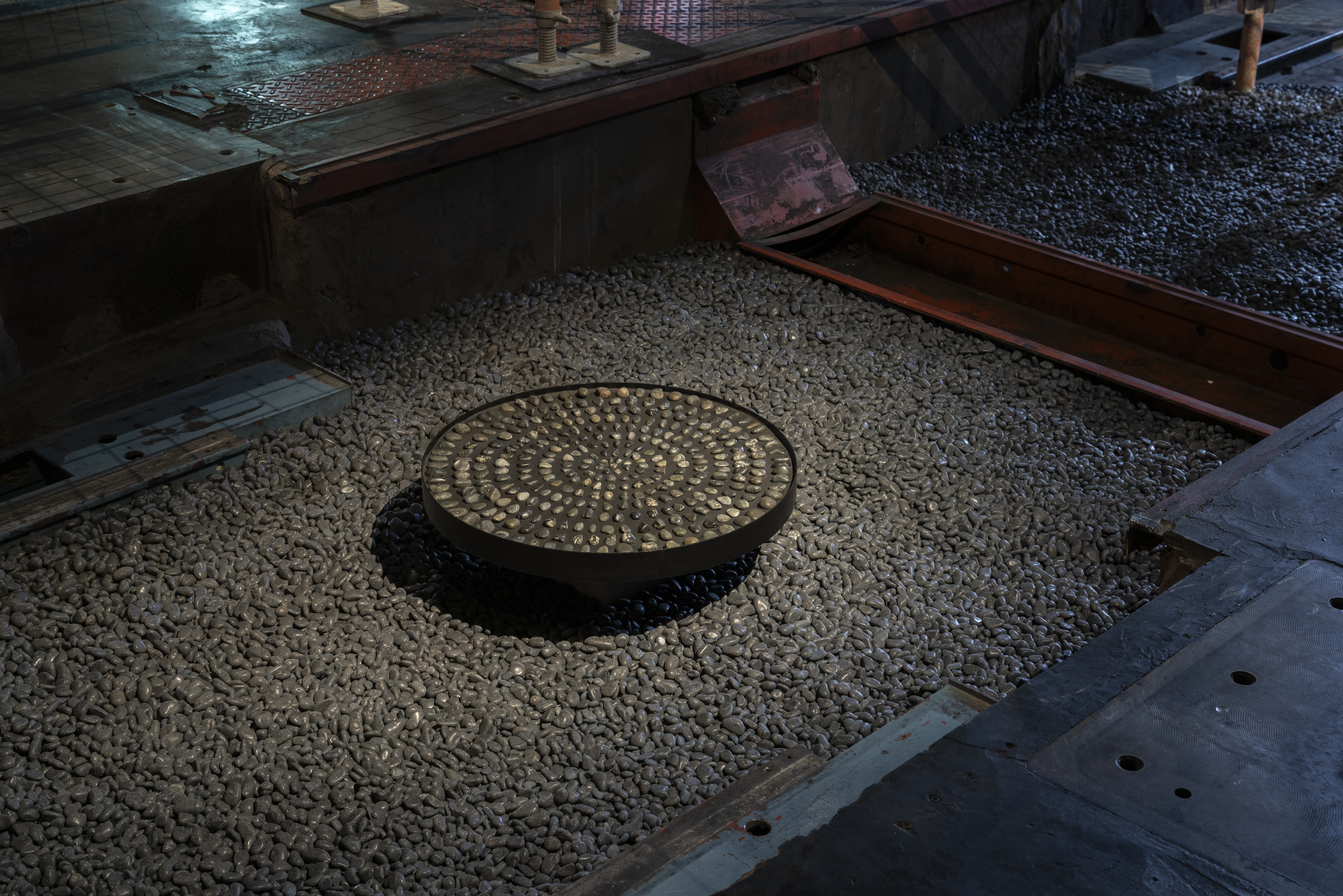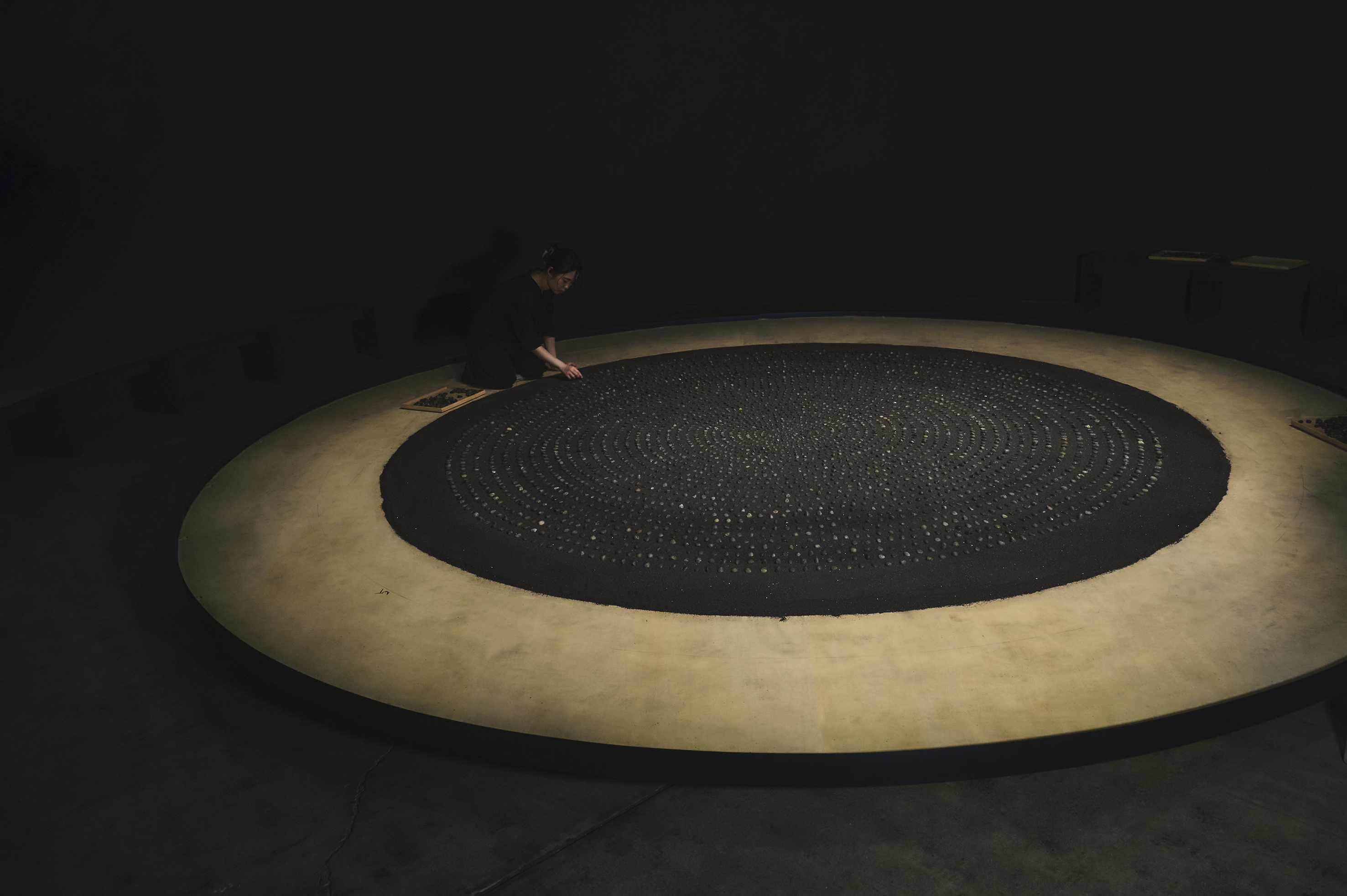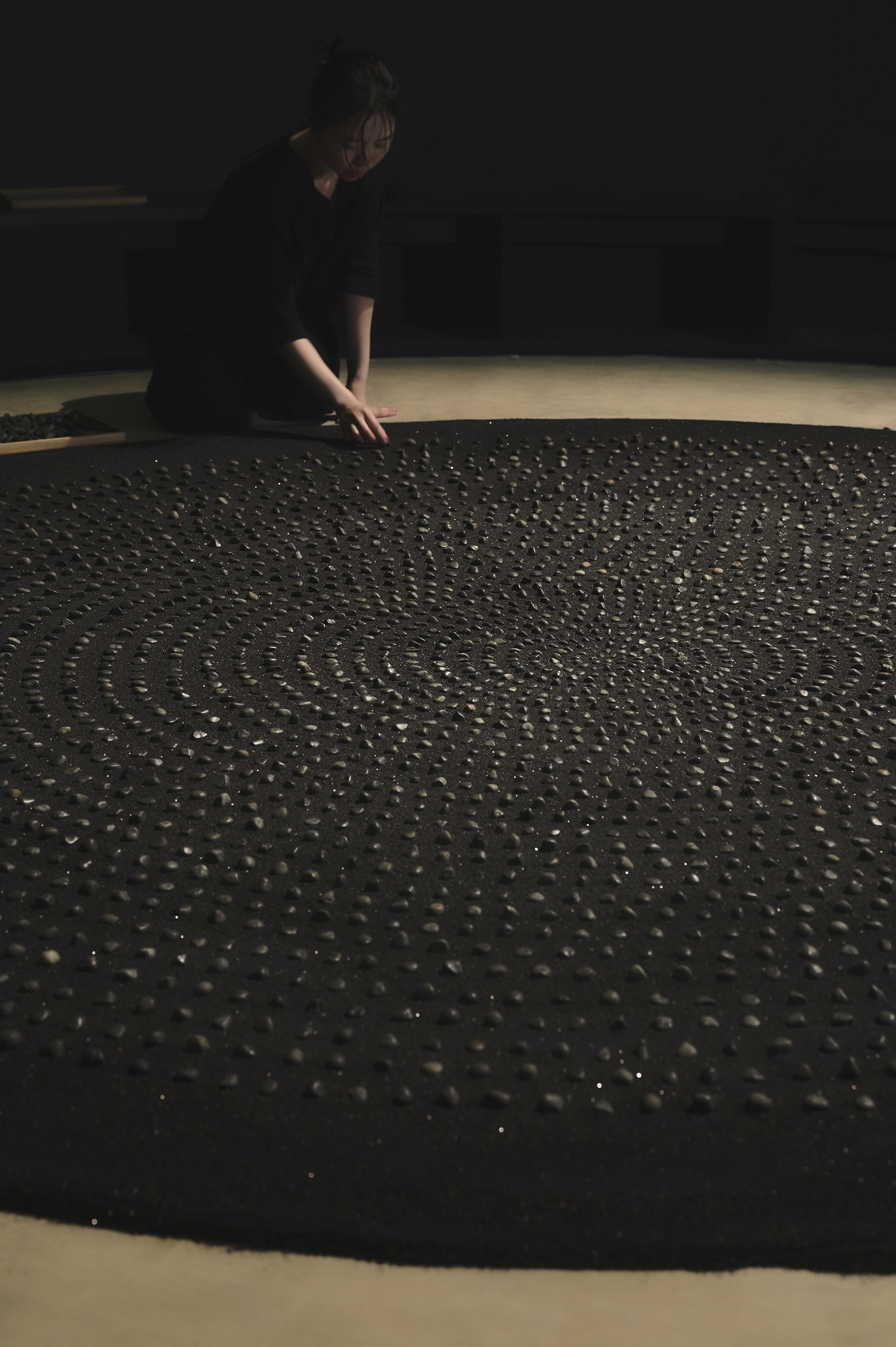 直径5mの円の中に無数の石が並ぶ、インスタレーション作品《流転する世界で》