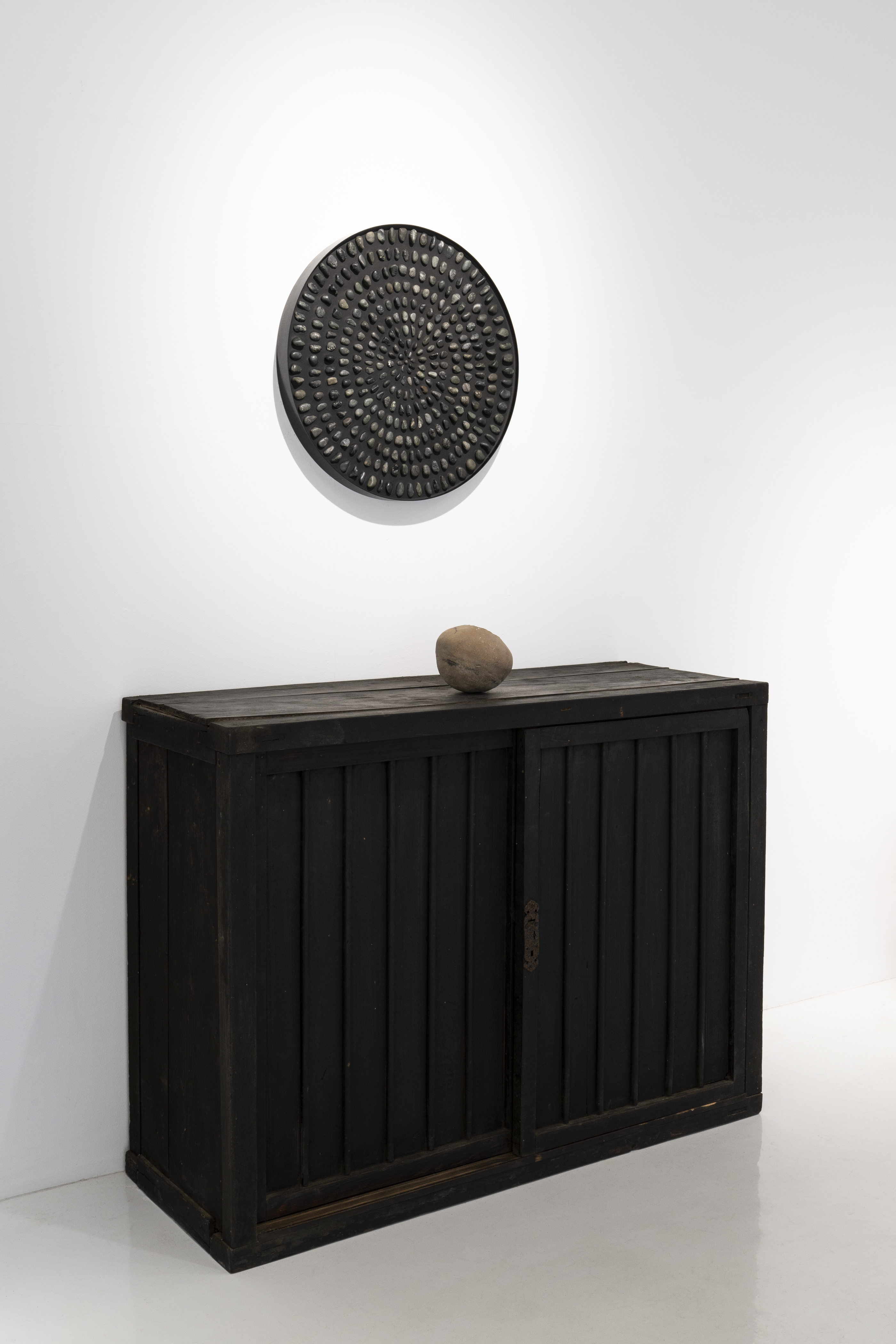 “Enso” / 2023 / Wood panel, cement, gravestone gravel
