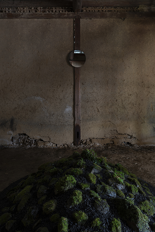 《清寧の地へ》2024 / 可変 / 吉野の苔石、土、水、鏡、吉野の音