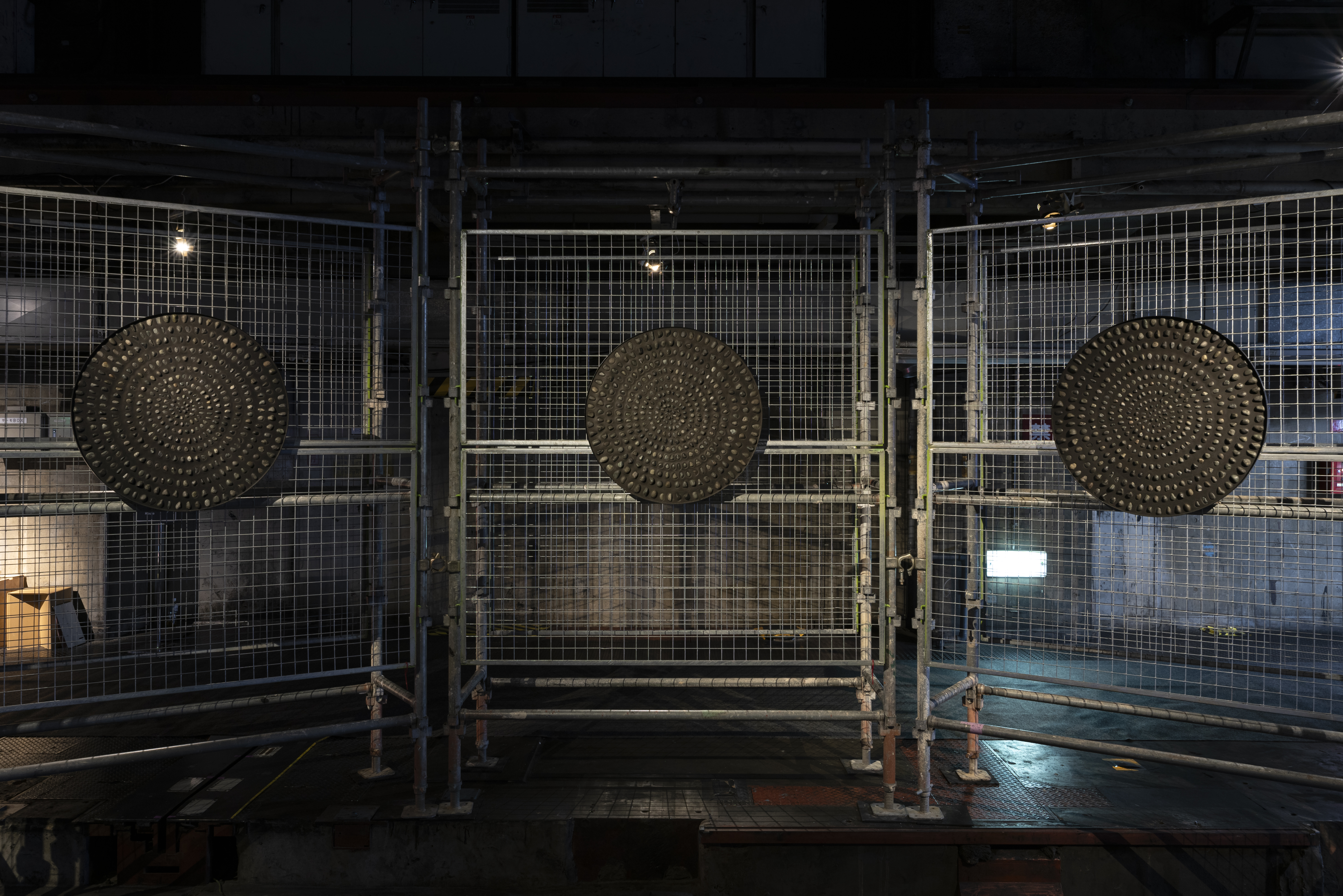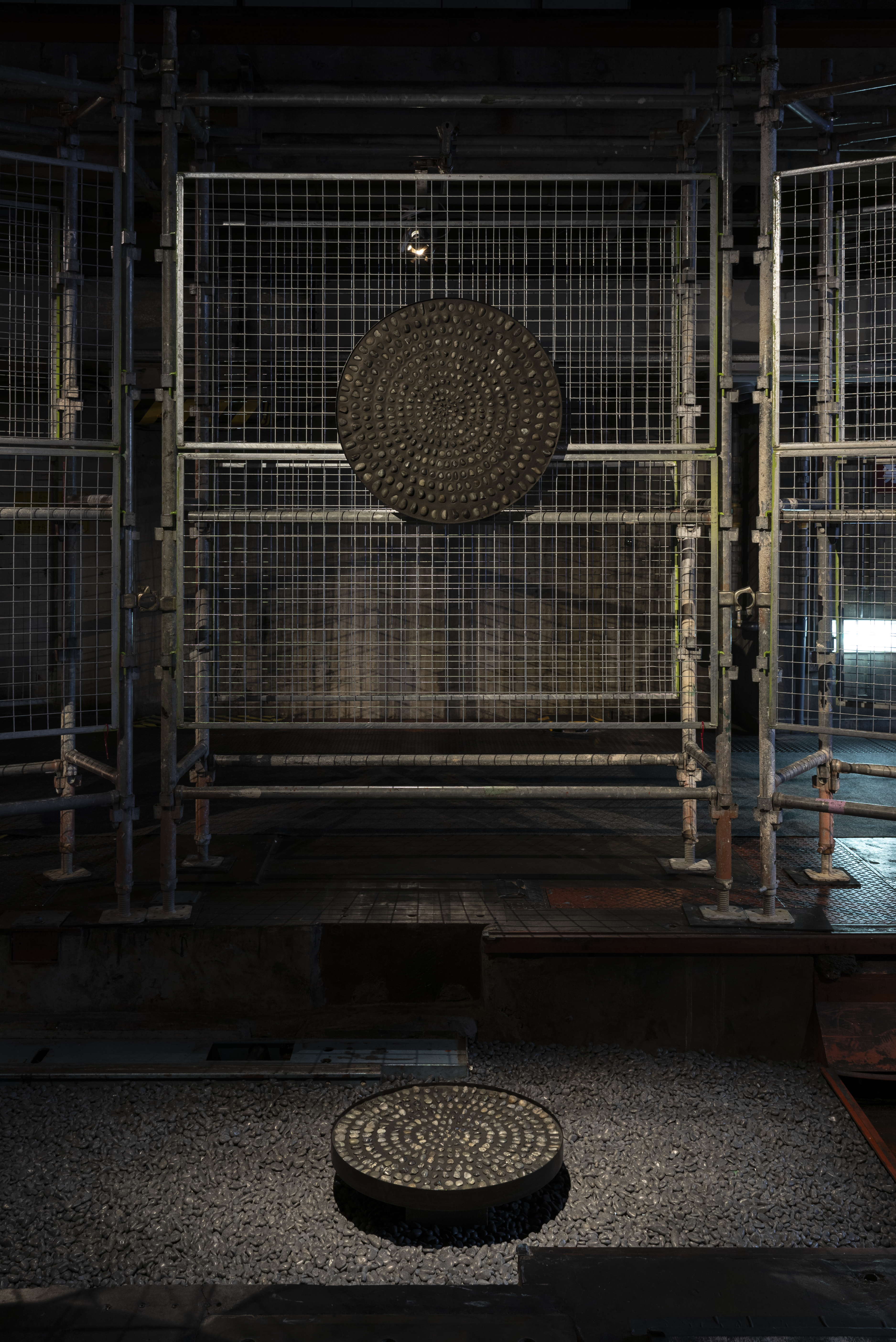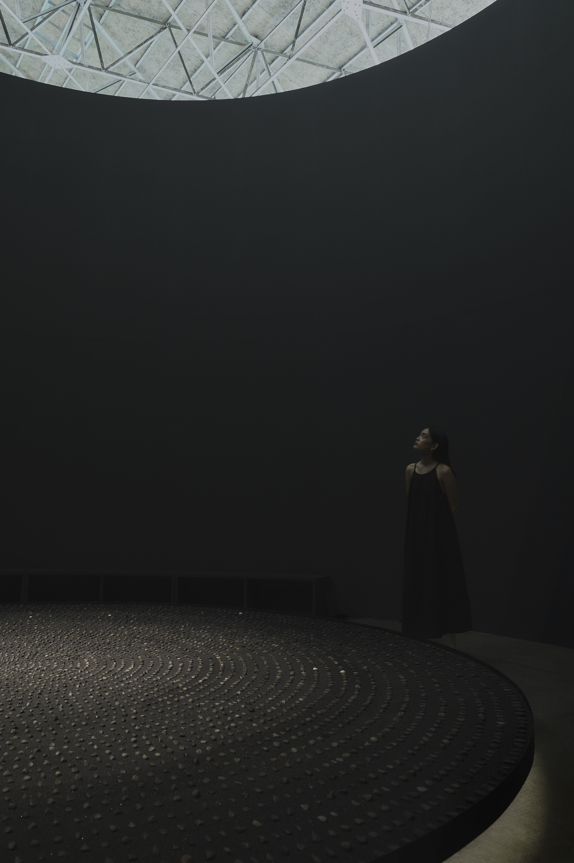 直径9m、高さ6mの筒状の空間。中には直径5mの円盤が浮かび、無数の石が円を描く。鑑賞者は作品の周りをぐるりと回ることができ、設置してあるベンチでゆっくり眺めることもできる。