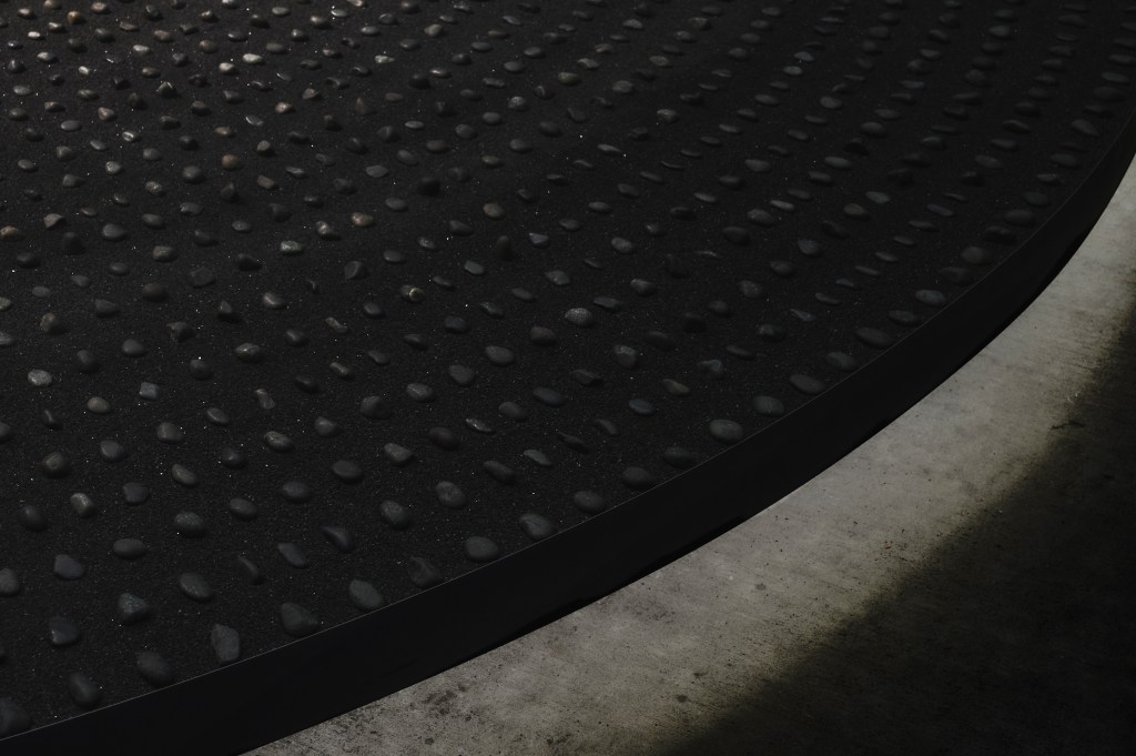 吉野からはじまる修験道の根本道場「大峯奥駈道」は、紀伊半島南東部の熊野まで繋がっている。本作では、熊野産の那智黒石を使用。およそ二千万年前に海底で微細な粒子が堆積し出来たこの石は、磨くと滑らかな漆黒の肌となり、やさしく光を放つ。