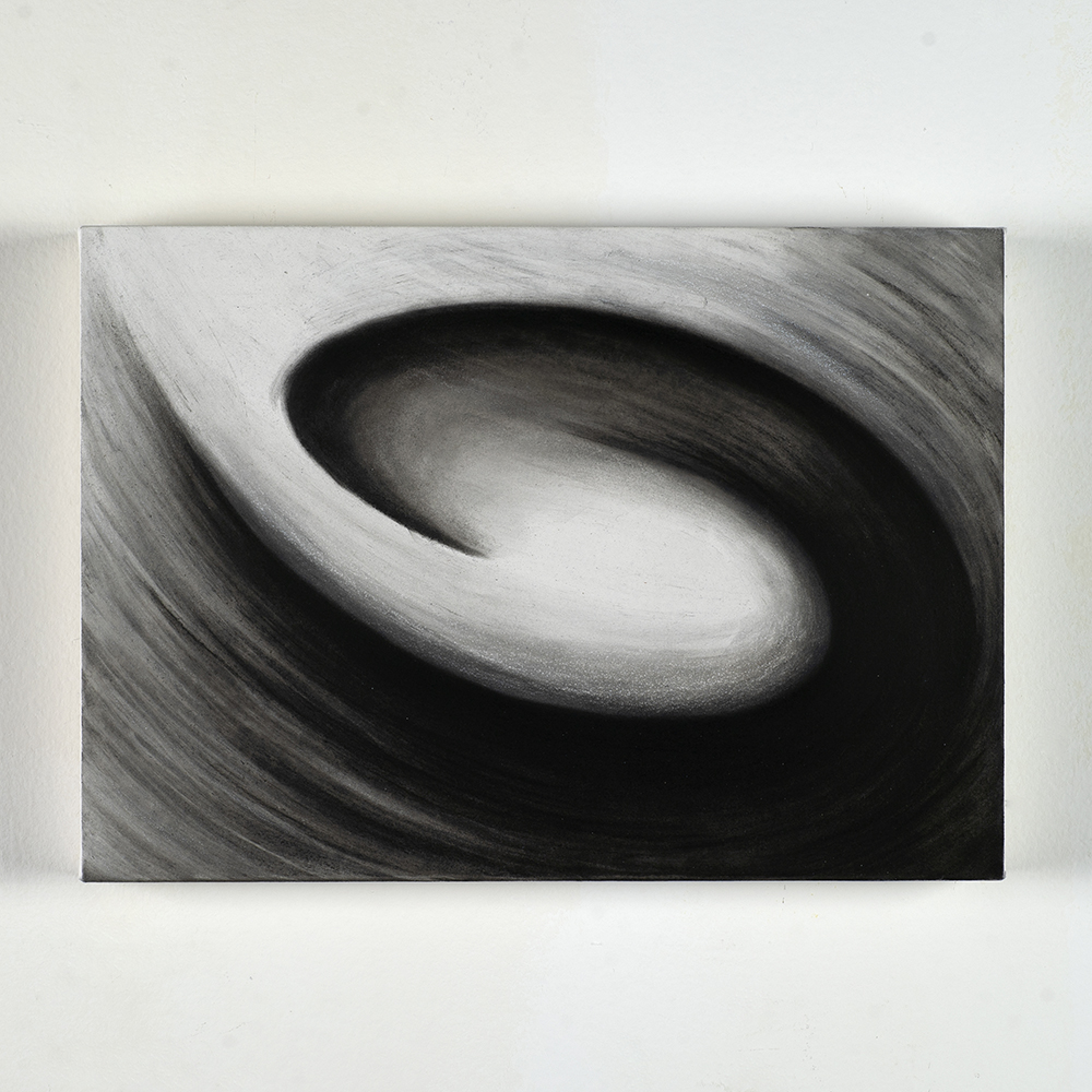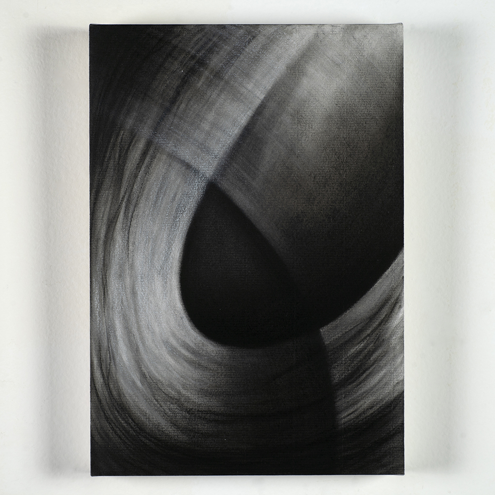 すべての作品において、実際に体感したものを頼りに表現している。その時感じた温度、質感、大きさ、光、動きなど…さまざまな要素を思い起こし可視化する。それらの中で、光の動き【振動】は特に重要な要素である。《Wave motion》は、【振動】に焦点をあてて描き出したシリーズ。